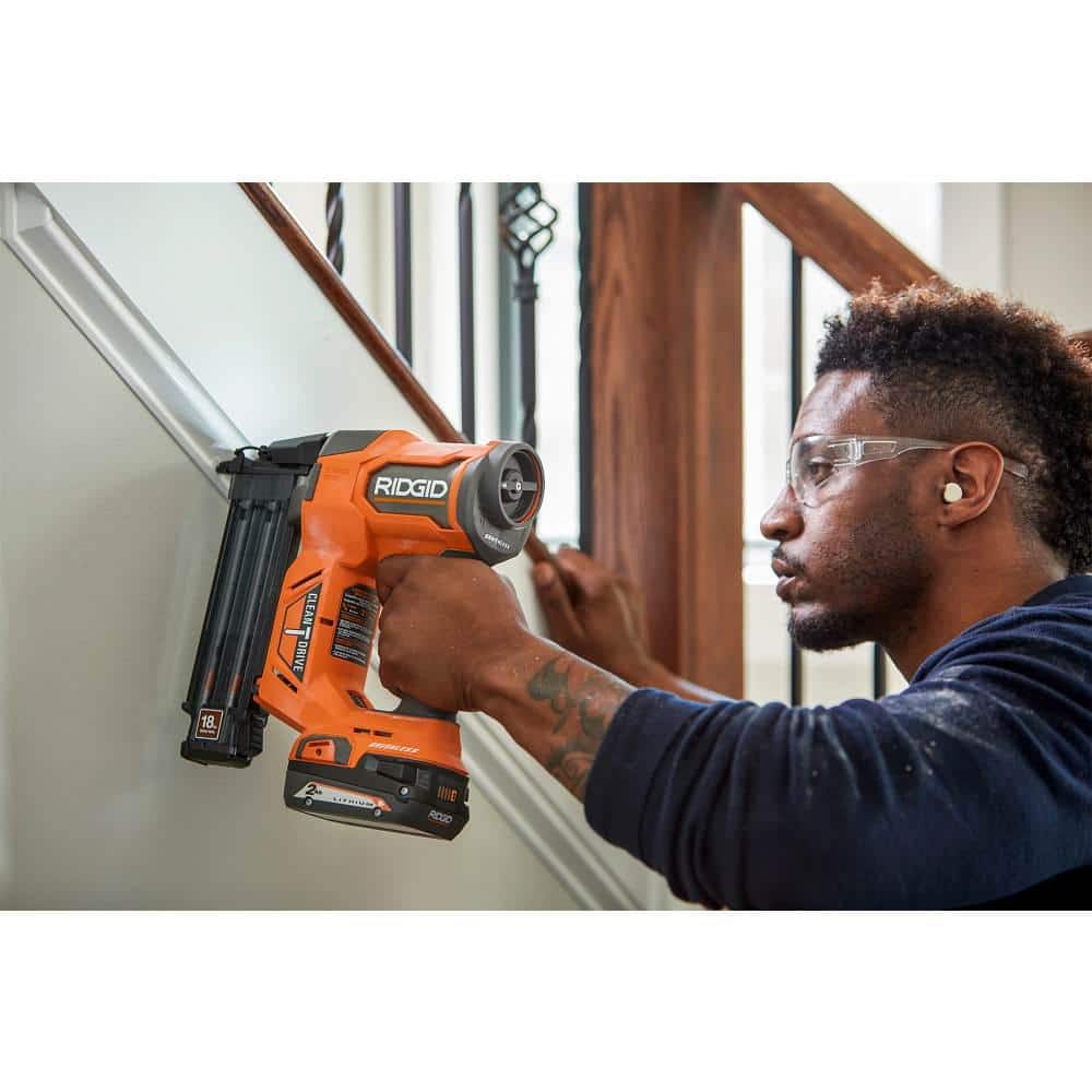 RIDGID introduces the 18V Brushless Cordless 18-Gauge 2-1/8 in. Brad Nailer (Tool Only) with CLEAN DRIVE Technology. This 18V Cordless Brad Nailer is more compact and lighter weight compared to the previous model (R09890B). Featuring CLEAN DRIVE Technology, this brad nailer boasts 17X more consecutive perfect drives than the competition. CLEAN DRIVE Technology means you can spend less time fixing and more time working. This brad nailer has a small nose for visibility, drives flush at all angles, and no driver blade slip. Paired with any RIDGID 18V battery, you get all the power of a pneumatic nailer in a cordless tool. With no compressor, no hose, and no gas cartridge, this cordless brad nailer enables faster set-up and easier maneuvering on the job site, driving 18-gauge nails from 5/8 in. to 2-1/8 in. Best of all, this tool is 100% compatible with all RIDGID 18V batteries, and with registration, is backed by the Industry Leading Lifetime Service Agreement, providing FREE seals, FREE pistons, and FREE driver blades - For LIFE. The 18V Brushless Cordless 18-Gauge 2-1/8 in. Brad Nailer includes 2 non-marring pads, and operator's manual. Battery and charger sold separately.